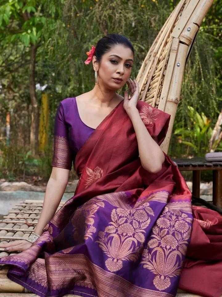 KP-R 257 New Traditional Wear Maroon Saree