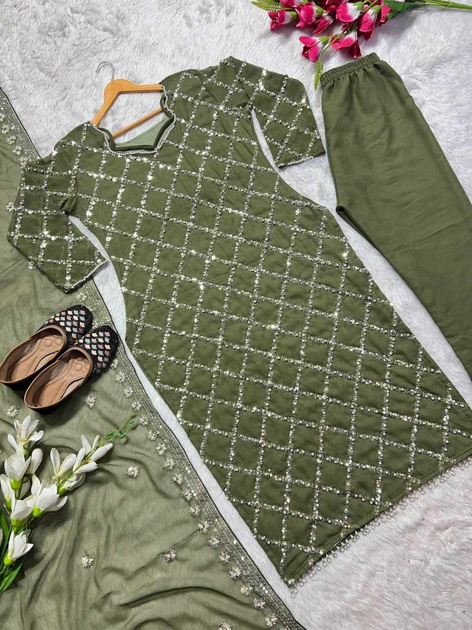 MF 409 New Fancy Embroidered Mehndi Color Dress