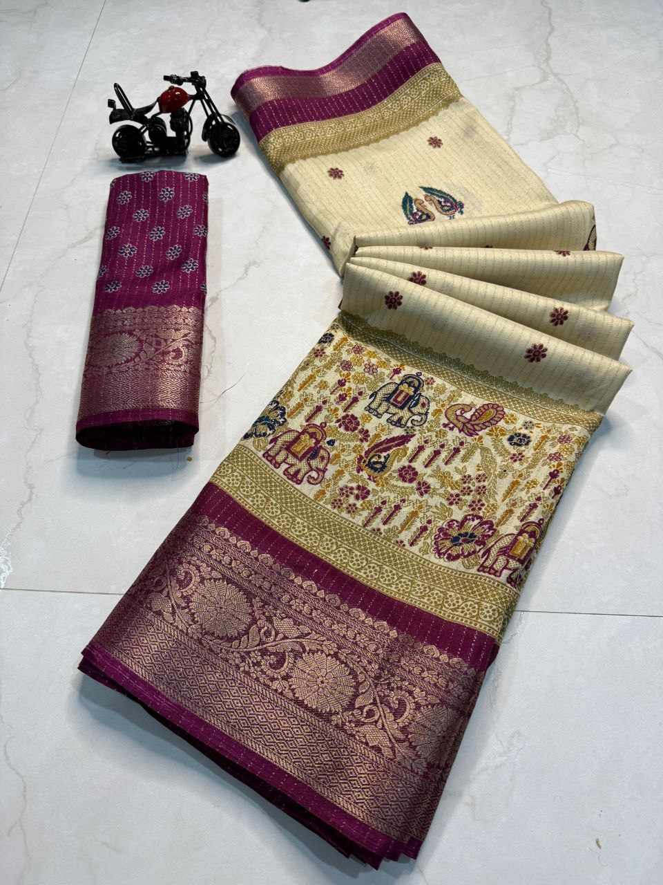 Name : PIYU 1044 RECCO HATHI Wine Saree