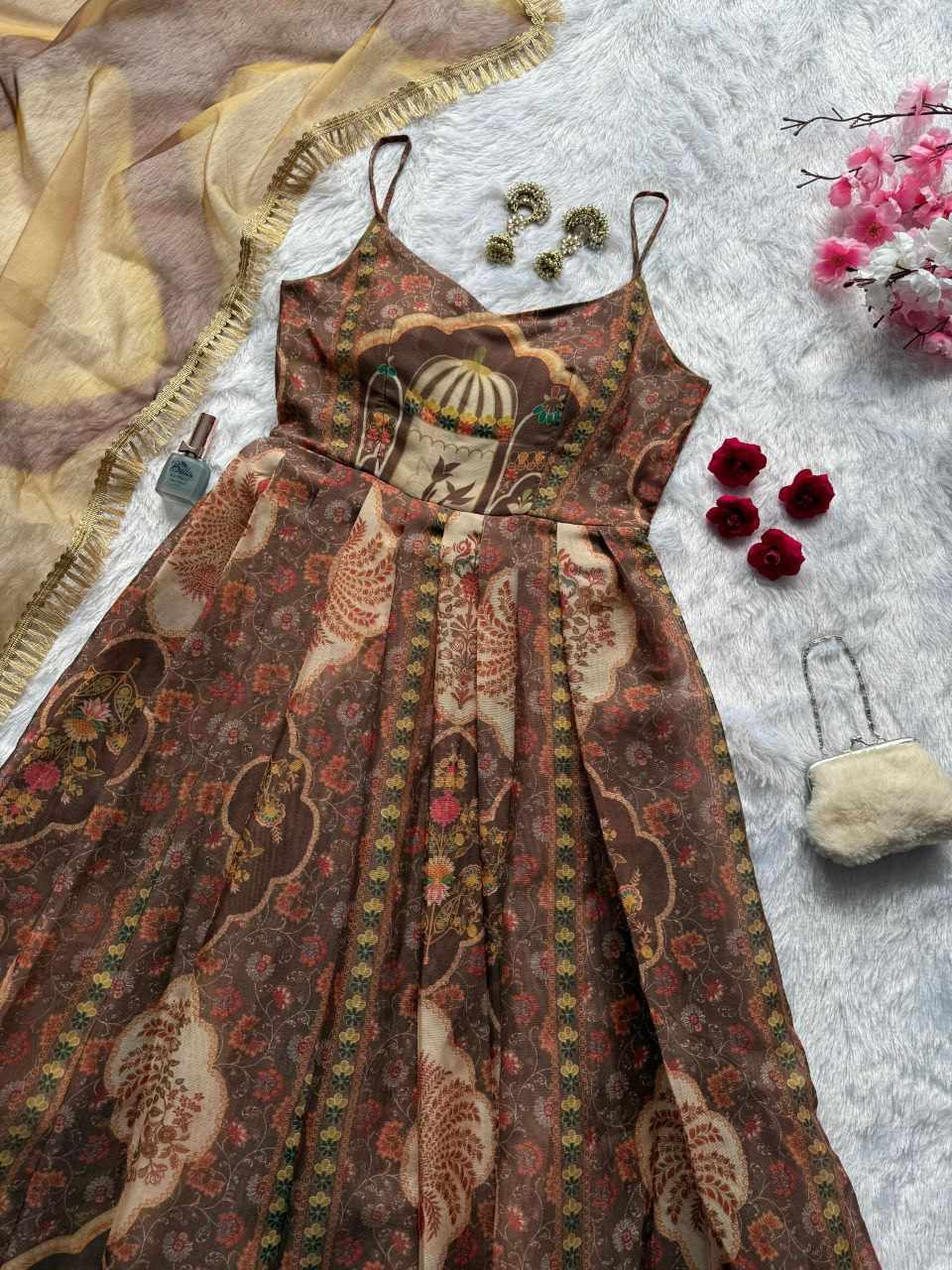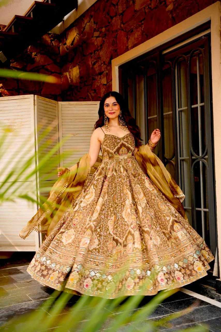 Anarkali Gown – Digital printed Jimmy Organza silk suit with a huge, graceful flair for a stunning flow