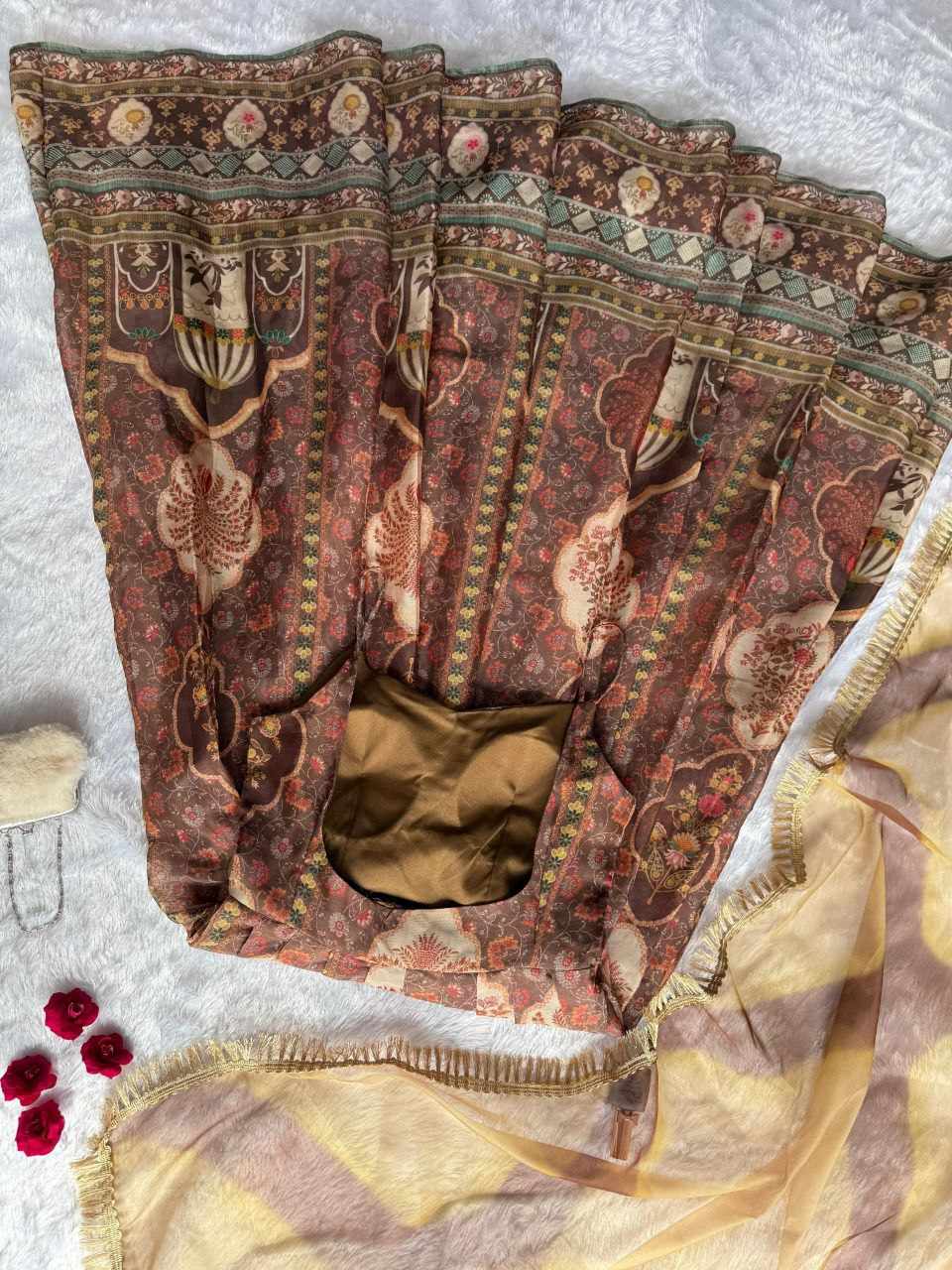 | Name : | SCnx 1176 Digital Printed Jimmy Organza Lahenga |
