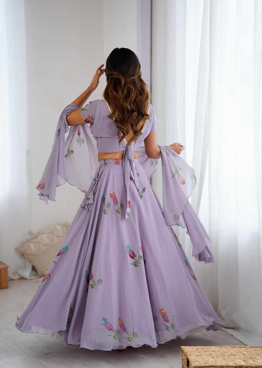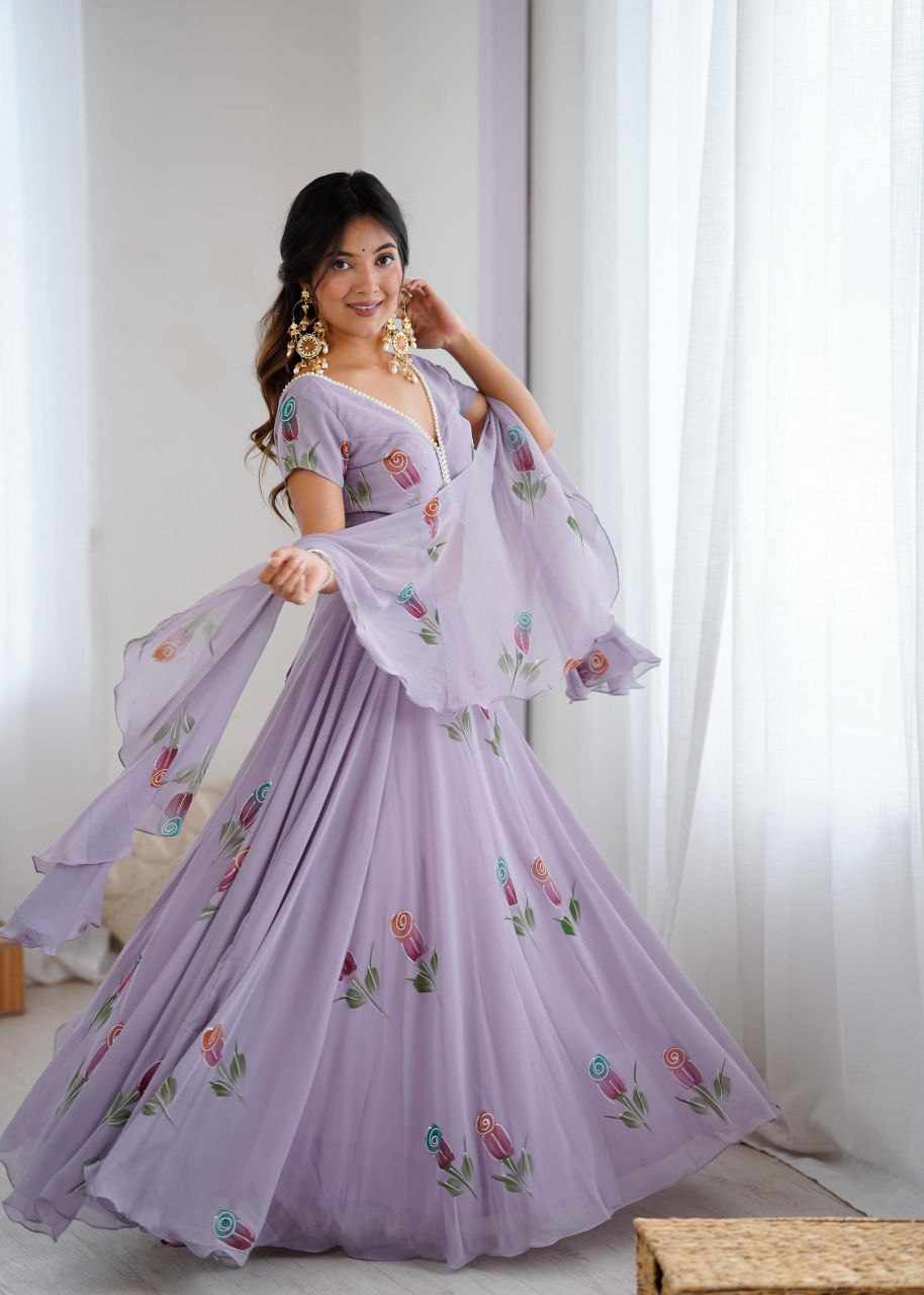 Lehenga - Pure Georgette hand painted lehenga