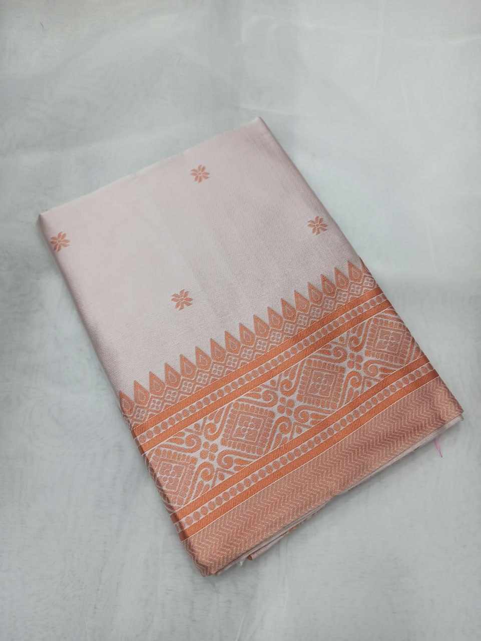 | Name : | MF 1950 WHITE BANARASI SOFT LICHI SILK SAREE |